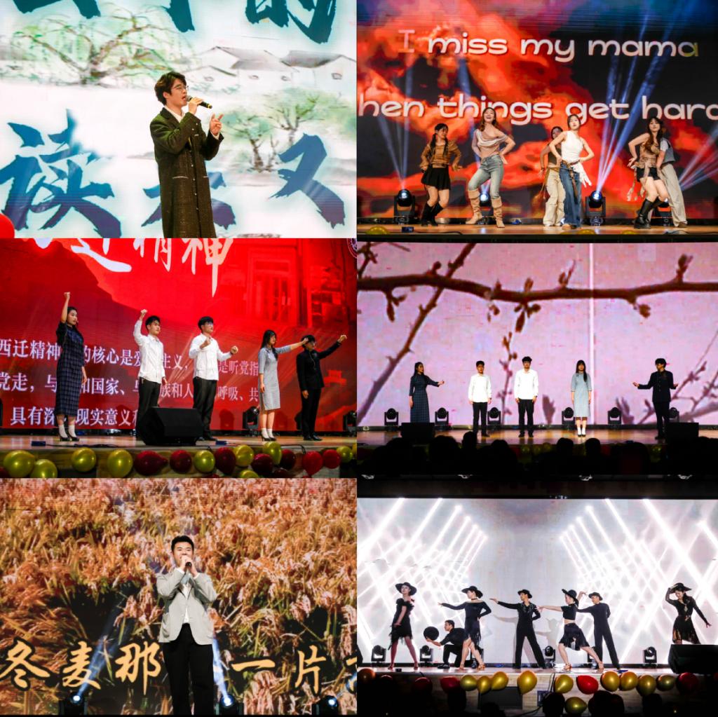第一篇章中,歌曲《燕归巢》以深情旋律回望母校源头,寄托精神归依;舞蹈《Diamond》用富有张力的舞姿演绎成长如钻石般历经磨砺、终绽光芒的历程。学院2025级新生原创情景朗诵《向西》,以真挚的讲述重温交大人从南洋西迁至西北的壮阔征程,深情诠释了一代代交大人胸怀家国、矢志报国的精神担当。歌曲《在希望的田野上》唱出了对未来的无限憧憬,舞蹈《Kaboom》则以奔放的拉丁舞步,释放青春的热情与生命的律动。
