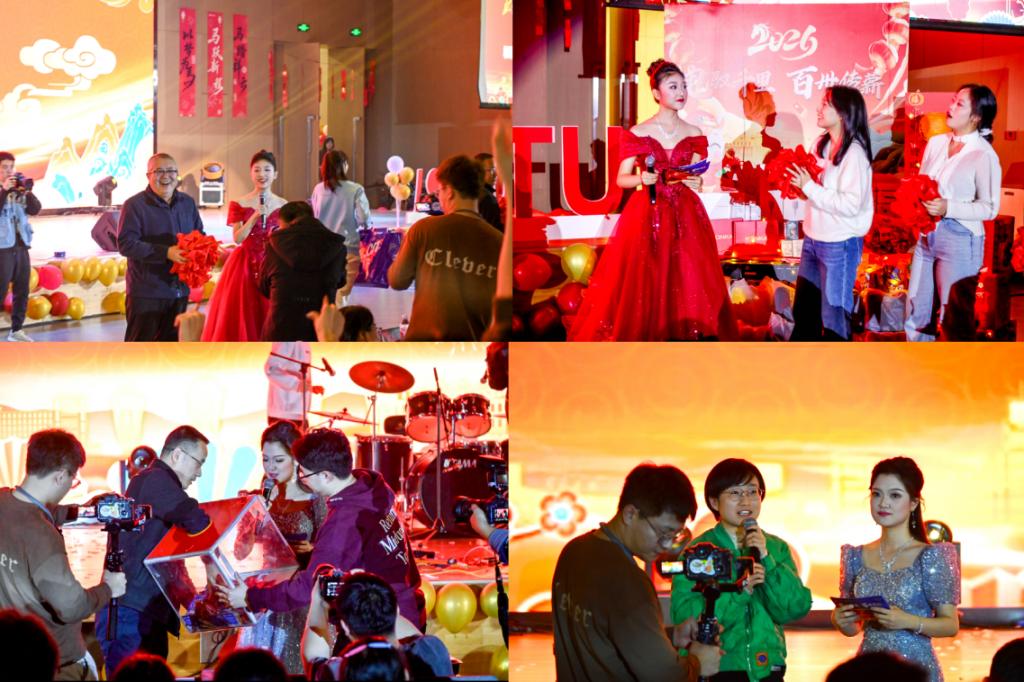 晚会期间,多轮抽奖与互动游戏环节穿插其间。学院领导和老师们先后登台,为同学们送出新年祝福与精心准备的礼品。一次次揭晓的幸运瞬间,引发现场阵阵欢呼与掌声,欢声笑语在报告厅内回荡。