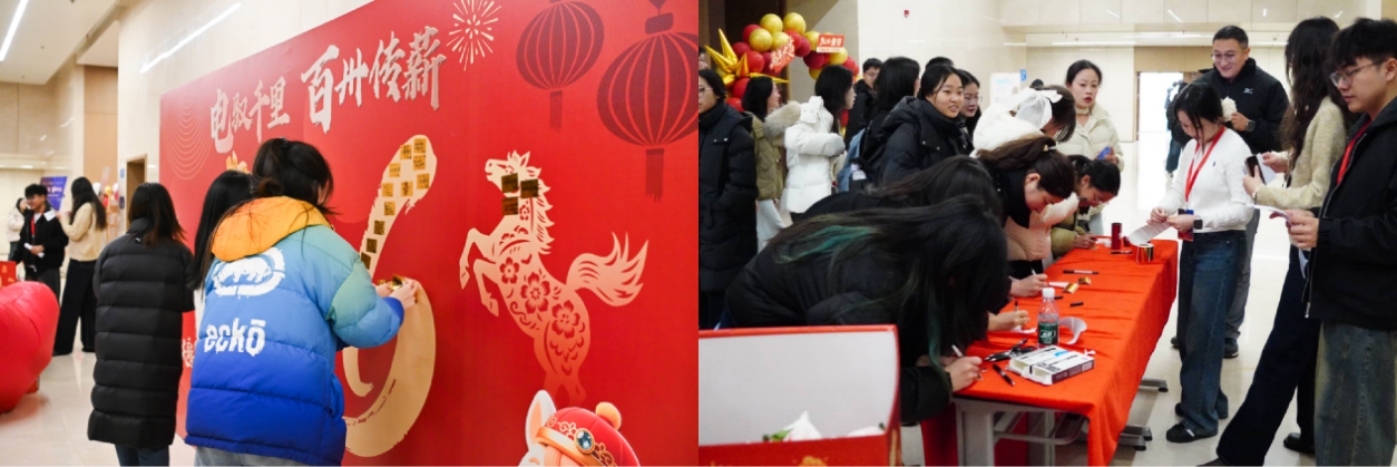 晚会启幕前,报告厅外,师生们在心愿贴上写下对新一年的美好祝福与对未来的真挚期许。金色心愿贴在心愿墙上拼成“2026”的字样,闪耀着希望与憧憬。大家在此驻足合影,将这一刻的笑容与期待定格为迎新篇章的温暖注脚。