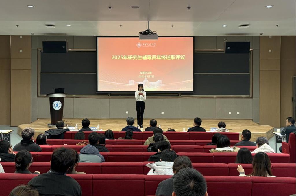 会上,46名研究生辅导员围绕本年度研究生党建思政与日常管理工作情况进行述职,聚焦思想理论教育和价值引领、党团和班级建设、学风建设、学生日常事务管理、心理健康教育、网络思政、校园危机事件应对、职业规划与就业指导、理论和实践研究等方面,结合学院研究生学情,汇报了2025年度工作履职情况、经验做法、专题案例及下一步工作计划等。