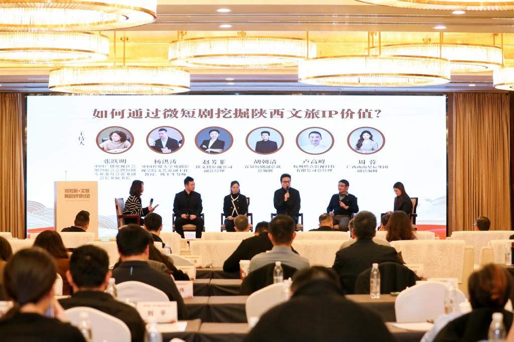 圆桌论坛环节,五位嘉宾就“如何通过微短剧挖掘陕西文旅IP价值”的议题展开探讨。中国传媒大学戏剧影视学院文艺系副主任杨洪涛,容量短剧副总裁、总编辑胡朝清,杭州燃点影视科技有限公司总经理卢高峰,陕文投影视公司副总经理赵芳菲,广西山海星辰集团副总编辑周蓉先后发言,互动交流氛围浓厚。