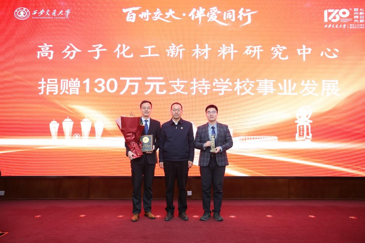 西安交大化工学院高分子化工新材料研究中心捐赠130万元,