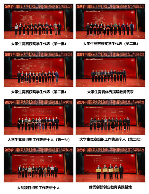 大会宣读了中国国际大学生创新大赛、创新创业实践教育基地、大学生竞赛、大学生创新训练计划获奖情况,并为获奖集体和个人颁奖。