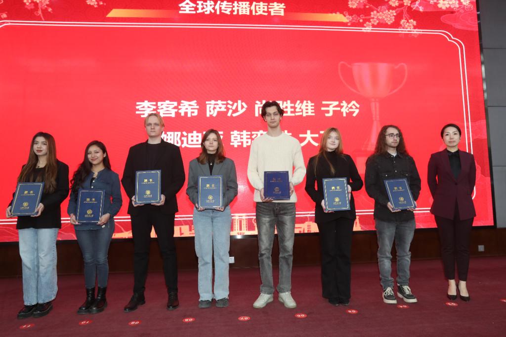 国际教育学院副院长纪婷为优秀全球传播使者颁奖。