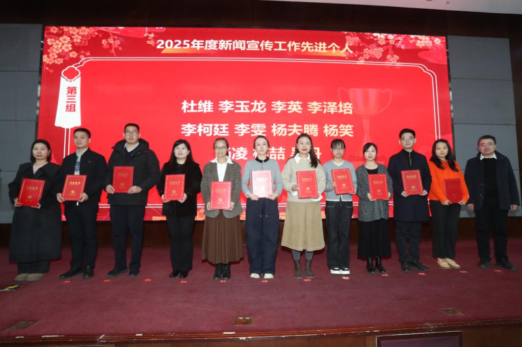 会上,还发布了2025年度优秀校园新闻作品、优秀新媒体账号。经校内单位推荐,宣传部遴选,共评出优秀校园新闻作品100部,其中文字类作品31部,图片类作品10部,视频类作品26部,融合报道类作品33部,优秀新媒体账号20个。
