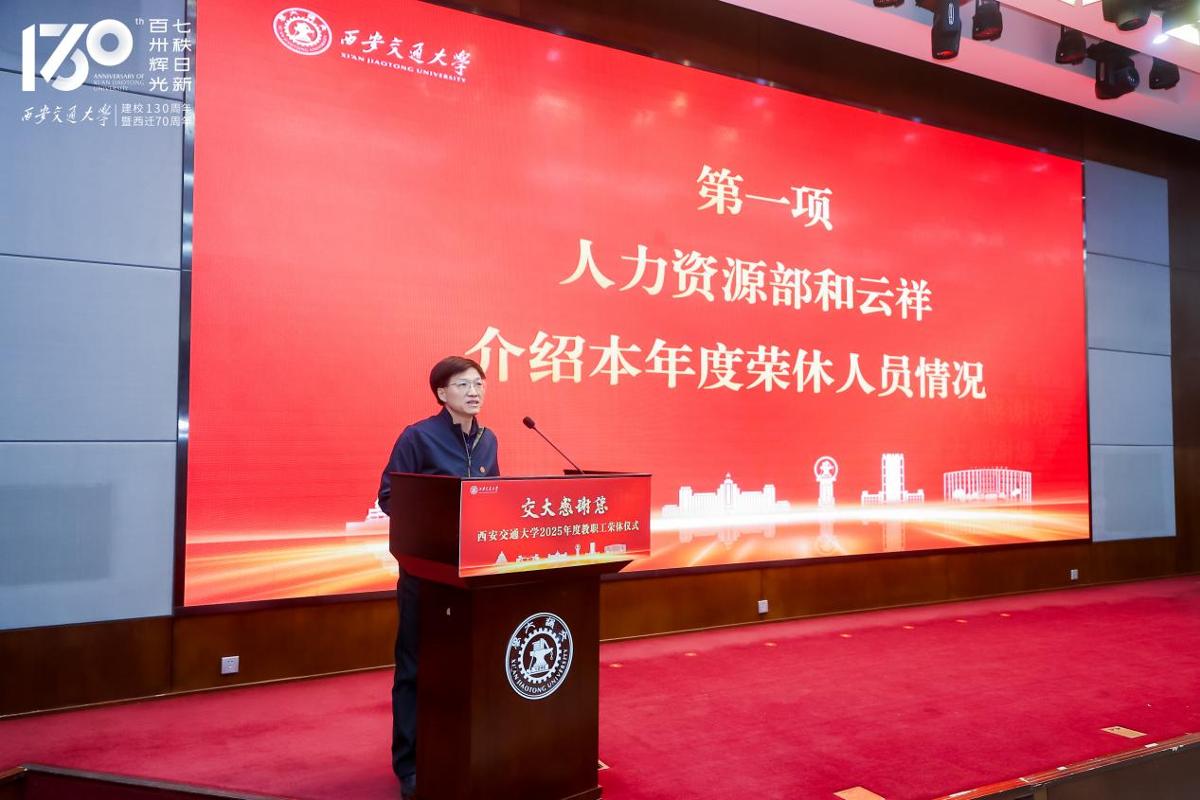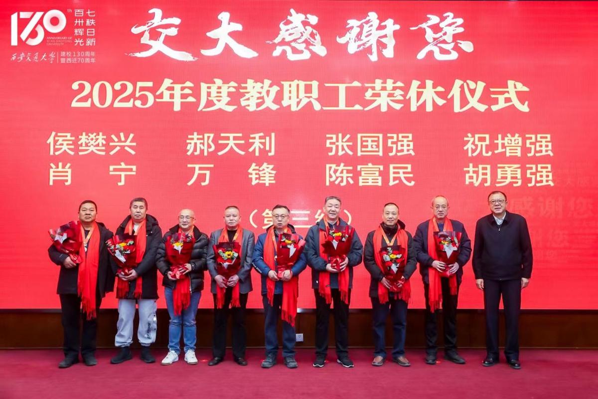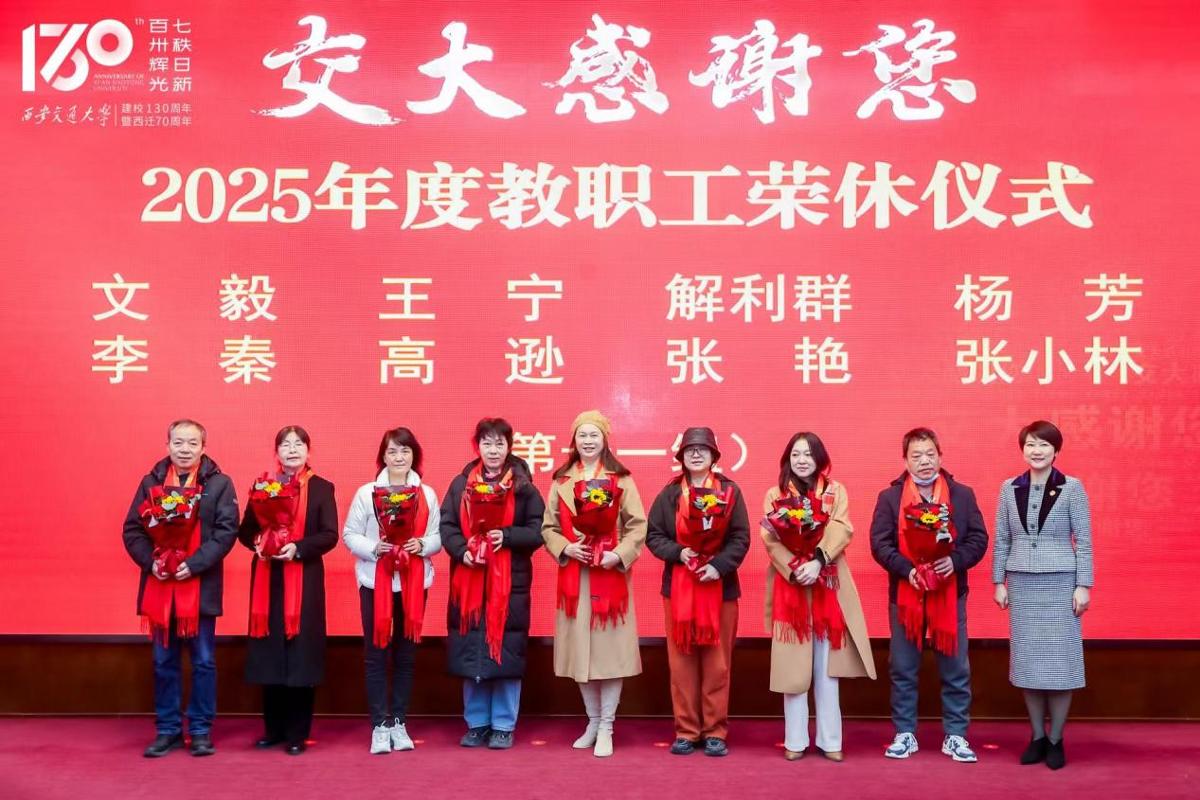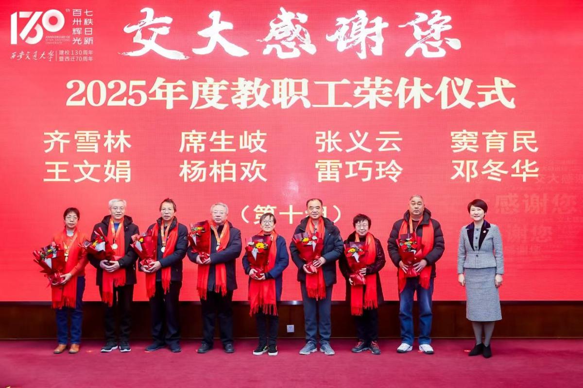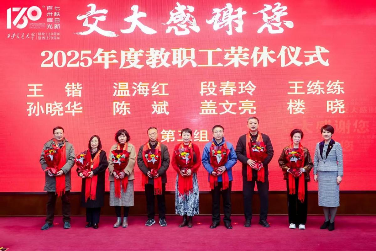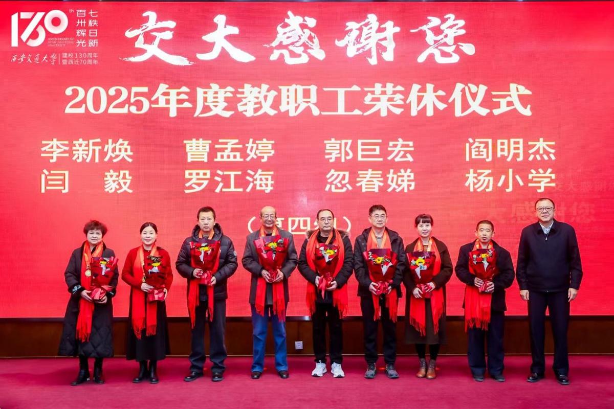 为感谢退休教职工为学校事业发展作出的积极贡献,弘扬尊师重道,传承乐教精业、修己立人的校园文化,激励后辈赓续优良传统、接力担当作为,进一步增强学校高质量发展的向心力和凝聚力,1月15日,西安交大举行2025年度教职工荣休仪式。西安交大党委书记卢建军、党委副书记王欢、校长助理黄忠德出席仪式。2025年度光荣退休的教职工代表,各学院、机关职能部处负责人,各二级单位工会主席和青年教师代表、学生代表参加。仪式由西安交大党委常委、组织部部长周远主持。