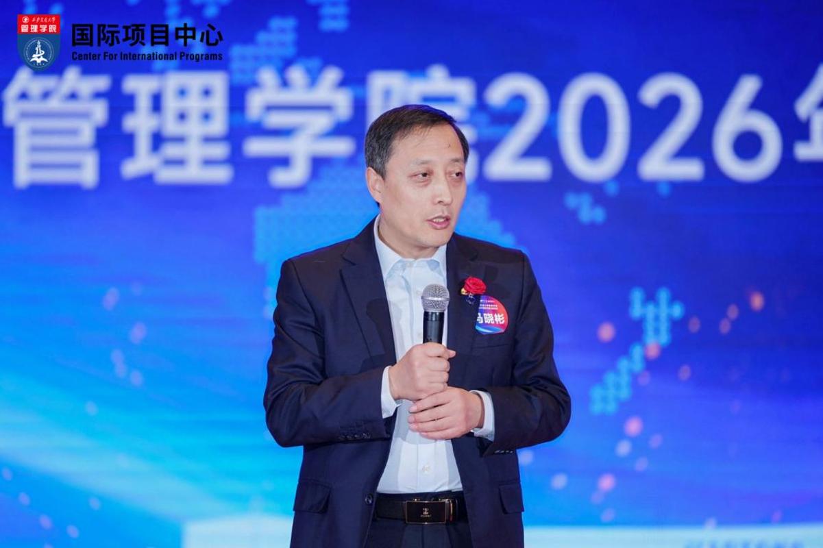 管理学院党委书记马晓彬在致辞中深情回望了管理学科与交大同呼吸、共成长的百余年奋进历程。从扎根西部的办学初心到面向全球的发展格局,管理学科始终以 “兴学强国” 为己任,在时代浪潮中积淀了深厚的学术底蕴与育人传统。面对深刻变化的时代环境,他希望全体国际项目师生谨记精勤求学,怀“兼容并蓄”之胸怀,做融汇贯通的践行者;谨记“敦笃励志”,秉“开放创新”之精神,做知行合一的实干家;谨记“果毅力行”,持“拼搏奋斗”之信念,做勇敢攀登的追梦者;谨记“忠恕任事”,守“忠诚奉献”之初心,做联通中外的桥梁者。最后,马晓彬向全体校友发出诚挚邀约:2026 年恰逢学校 130 周年华诞,盼各位校友重返母校,共忆同窗岁月,共话发展新篇,共襄教育强国建设盛举。