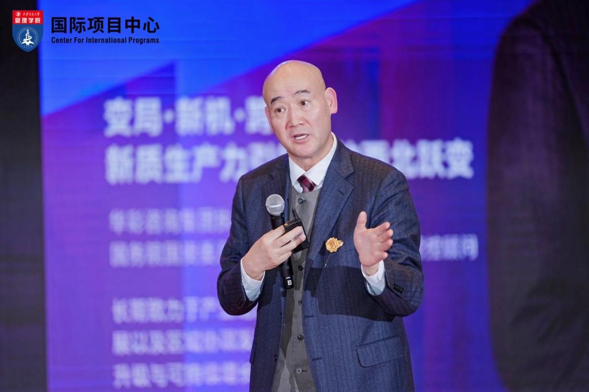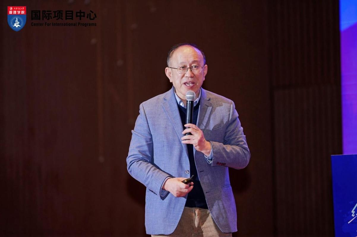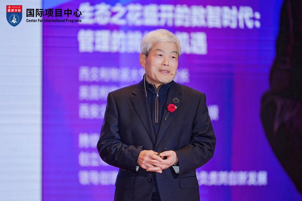 席酉民教授以《生态之花盛开的数字时代:管理的挑战与机遇》为题,提出当前时代正经历“巨变、动荡、颠覆、重塑”的深刻变革,人工智能等新技术快速迭代,正在彻底改变商业社会的运行逻辑。传统的“企业——市场”二分法正在被“产业生态”所取代,数据资产、共享、共生与人机协同是其核心运行机制。为印证这一观点,席酉民教授分享了山东一家劳保用品批发商的案例:这家传统小企业通过打造数字化供应链平台,整合全球供应商与客户,创新出平台使用费、产品定销、仓储共享等多重盈利模式,实现了从传统批发商到生态组织者的跨越式发展,证明中小企业在数字时代可通过生态构建突破增长瓶颈。他总结道:未来社会将呈现“组织生态化、生活社群化、活动产业化”三大趋势,唯有成为社会企业家、产业家,方能驾驭不确定性,引领未来。同时,他也分享了西交利物浦大学打造“学习超市”“产业家学院”等的实践,展现了教育范式从“专业精英”到“行业精英”再到“生态赋能”持续变革路径探索,为管理教育创新提供了鲜活样本。
