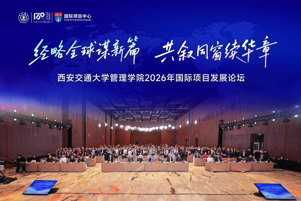 1月11日下午,管理学院2026年国际项目发展论坛在西安举行。本次论坛以“经略全球谋新篇 共叙同窗续华章” 为主题,聚焦数字时代管理创新等前沿议题,将高水平学术交流与多元人文互动深度融合。学校相关部门领导、管理学院师生代表、社会各界嘉宾及国际项目校友近400人齐聚一堂,共话中外合作办学发展路径,共同探索管理教育与全球发展深度融合的新机遇与新可能。