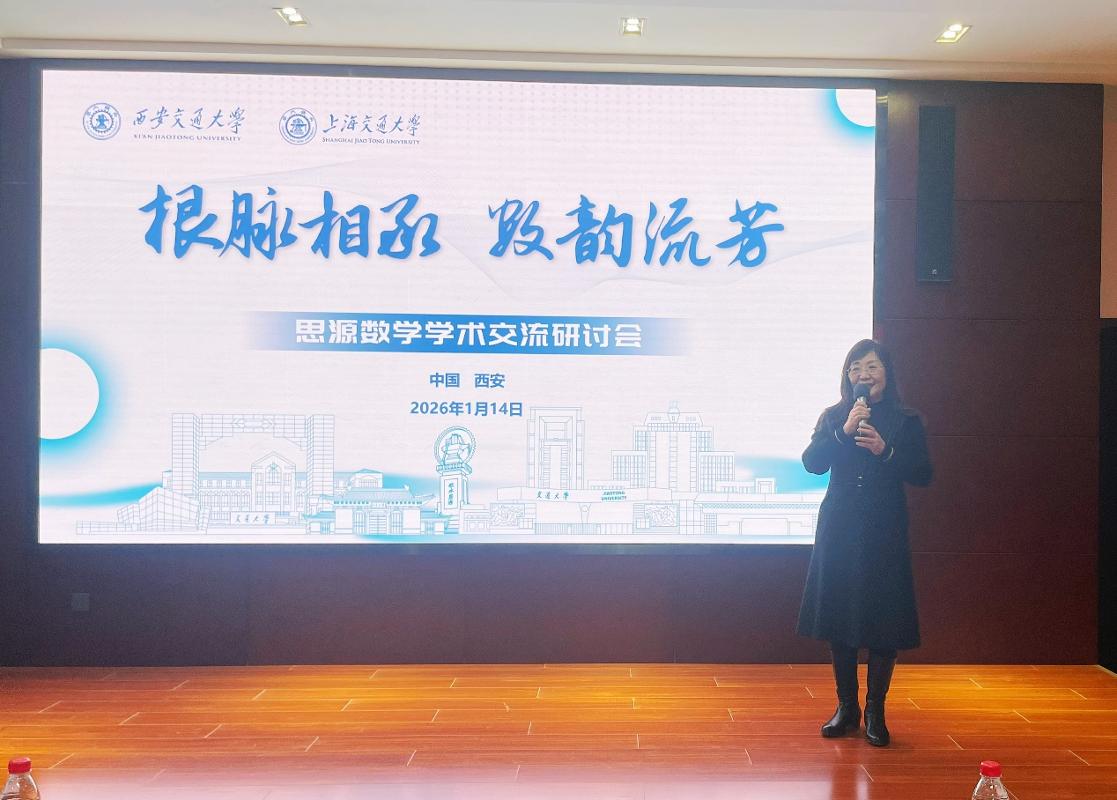 1月13日至1月14日,由西安交通大学数学与统计学院、上海交通大学自然科学研究院、数学科学学院联合主办的“根脉相承,数韵流芳”思源数学学术交流研讨会首次活动在西安交大数学楼召开。中国科学院院士、西安交通大学数学与统计学院徐宗本教授,上海交通大学自然科学研究院院长金石教授和两校数学领域专家学者、青年教师代表齐聚一堂,围绕数学、统计、人工智能等领域前沿研究展开深度研讨。
