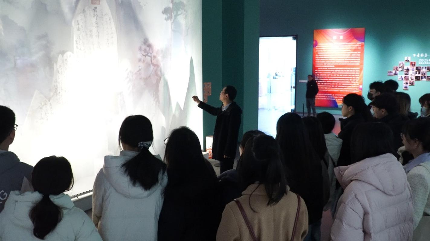 活动中,王劲、刘菁担任导览,带领学生解读作品背后的创作理念与文化内涵,让学生们触摸到当代艺术“扎根地域、对话时代”的精神底色,也对“文艺如何连接传统与当下”有了更具体的感知。从《诗山道水》装置里的秦岭意象,到“观心·造境”板块的科技与艺术融合实验,再到雪域主题作品中的“唐蕃古道”历史脉络,学生们在多元艺术现场中,既感受到当代青年文艺家的创作活力,也加深了对陕西地域文化与中国当代艺术生态的理解。