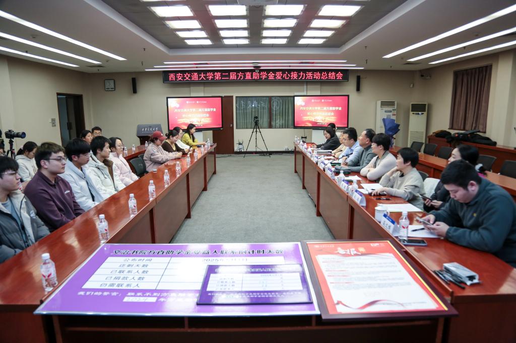 1月14日,西安交通大学第二届方直助学金爱心接力活动总结会在兴庆校区举行。陕西方直贸易有限公司总经理韩西武校友、财务副总智筱梅、方直助学金经办人陈鹏,西安交通大学崇实书院院务主任段继超、文治书院院务主任王琦及书院相关辅导员,方直助学金2024年受助学生代表共同参会。会议由西安交通大学教育基金会秘书长邢晓强主持。