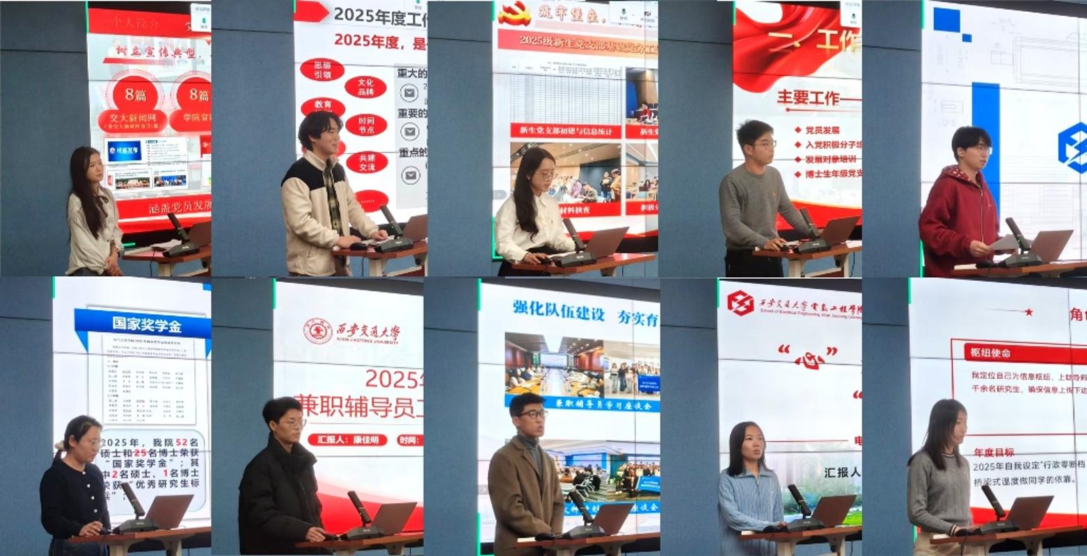 团学工作领域,周悦瑶、唐家乐从思想引领、制度完善、组织构建与评价激励四个维度,全面展示了学院共青团工作在凝聚青年、服务大局中取得的扎实成效。面对2025年秋季就业工作,叶家男、薛栩晨、咸钦元主动作为、多措并举,通过细化服务流程、拓展就业渠道,有力推动了毕业生高质量充分就业。朱雯嘉、刘亚群秉持“在干中学、在学中干”的理念,高效统筹日常行政与物资管理,持续推进工作的规范化、精细化,为学院各项日常事务的平稳运行提供了坚实保障。