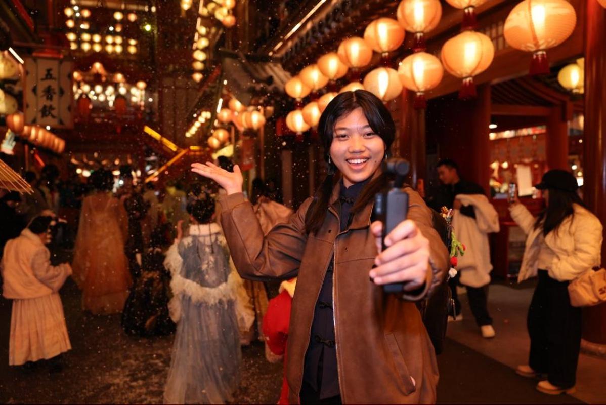 长安十二时辰的仿唐建筑群落中,沉浸式市井表演让创作者们仿佛穿越盛唐;大唐不夜城的灯光秀与仿古建筑光影互动,成为夜间拍摄的绝佳素材。西安饭庄的“三秦套餐”、书院门的春联年味、易俗社的秦腔韵味,每一处场景都成为中外青年捕捉的灵感源泉,在影像中串联起西安的文化根脉与生活温度。