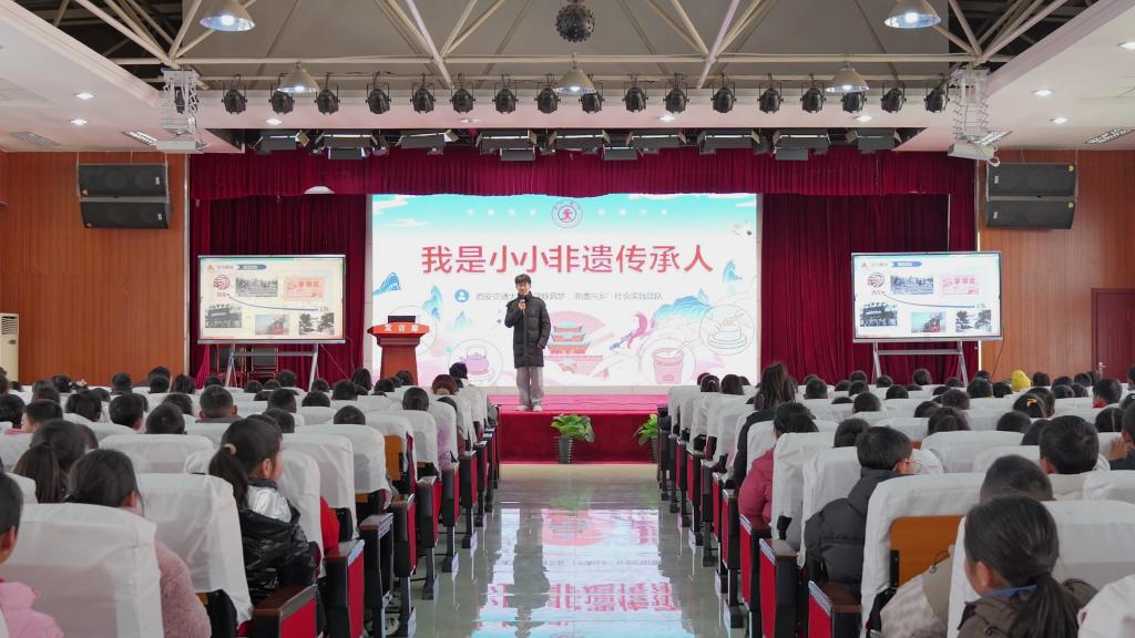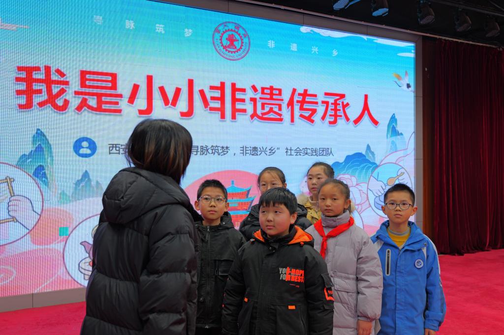 此次活动的核心亮点,是为交大百卅校庆录制专属祝福视频。在书院学子的引导下,孩子们在礼堂用稚嫩而真挚的声音齐声喊道:“祝西安交通大学一百三十岁生日快乐!”“向西迁前辈致敬,愿交大越办越好!” 一张张纯真笑脸、一句句诚挚祝愿,将校地同心的温情与敬意定格,成为献给百卅交大最动人的礼物。镇安县第二小学带队老师表示,非遗进校园是落实文化育人的重要举措,西安交通大学南洋书院的到来,为孩子们搭建了了解本土文化的优质平台,让传统文化以更鲜活的方式浸润童心。