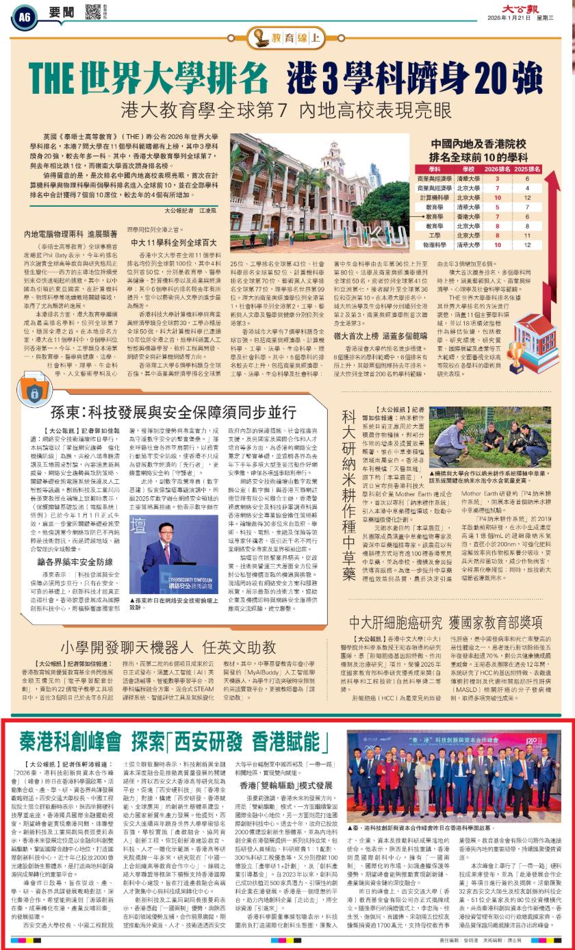 【大公报】秦港峰會共商「西安研發 香港賦能」