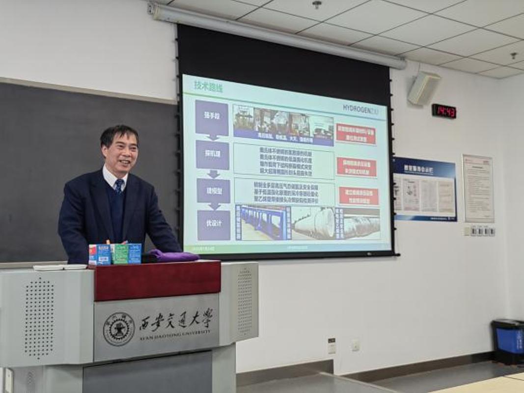 1月24日,西安交通大学化学工程学院化工机械研究所主办的“华山论剑-化机讲坛”首场讲座在中国西部科技创新港19号楼3110教室成功举行。中国工程院院士、浙江大学氢能研究院院长郑津洋教授应邀作题为《高性能极端承压设备创新设计与制造》的学术报告。本次讲坛嘉宾由化工机械研究所所长吴震教授邀请,张早校教授主持,程光旭教授、李云教授、钟显康教授等十余位教师代表及化工学院百余名硕博士研究生现场参与,现场学术氛围浓厚,交流热烈。