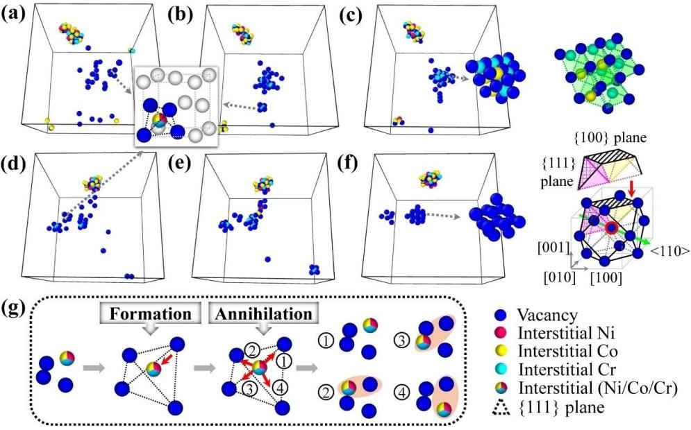卢晨阳教授在揭示原子尺度核材料缺陷演化规律方面取得进展,研究成果以《面心立方复杂固溶体合金中局部化学成分变化诱发的空洞或堆垛层错四面体的形成》(formation of voids or stacking-fault tetrahedra induced by local chemical variations in face-centered-cubic complex concentrated alloys)为题于2026年1月6日发表在世界物理学顶级学术期刊《物理评论快报》(physical review letters)上。该工作由湖南大学、西安交通大学、密歇根大学等单位合作完成,卢晨阳教授是文章的共同第一作者。该工作为通过精准成分设计与局域化学调控来主动抑制空洞肿胀从而提升材料的抗辐照性能提供了清晰的研究方向与设计准则。此外,研究团队开发的drld模拟方法拓展了目前多尺度模拟框架中的时间尺度和空间分辨率,可推广应用于相分离、蠕变等其它材料微结构演变的长程模拟,为评估和预测材料在极端环境下的长期服役性能提供了强大工具。