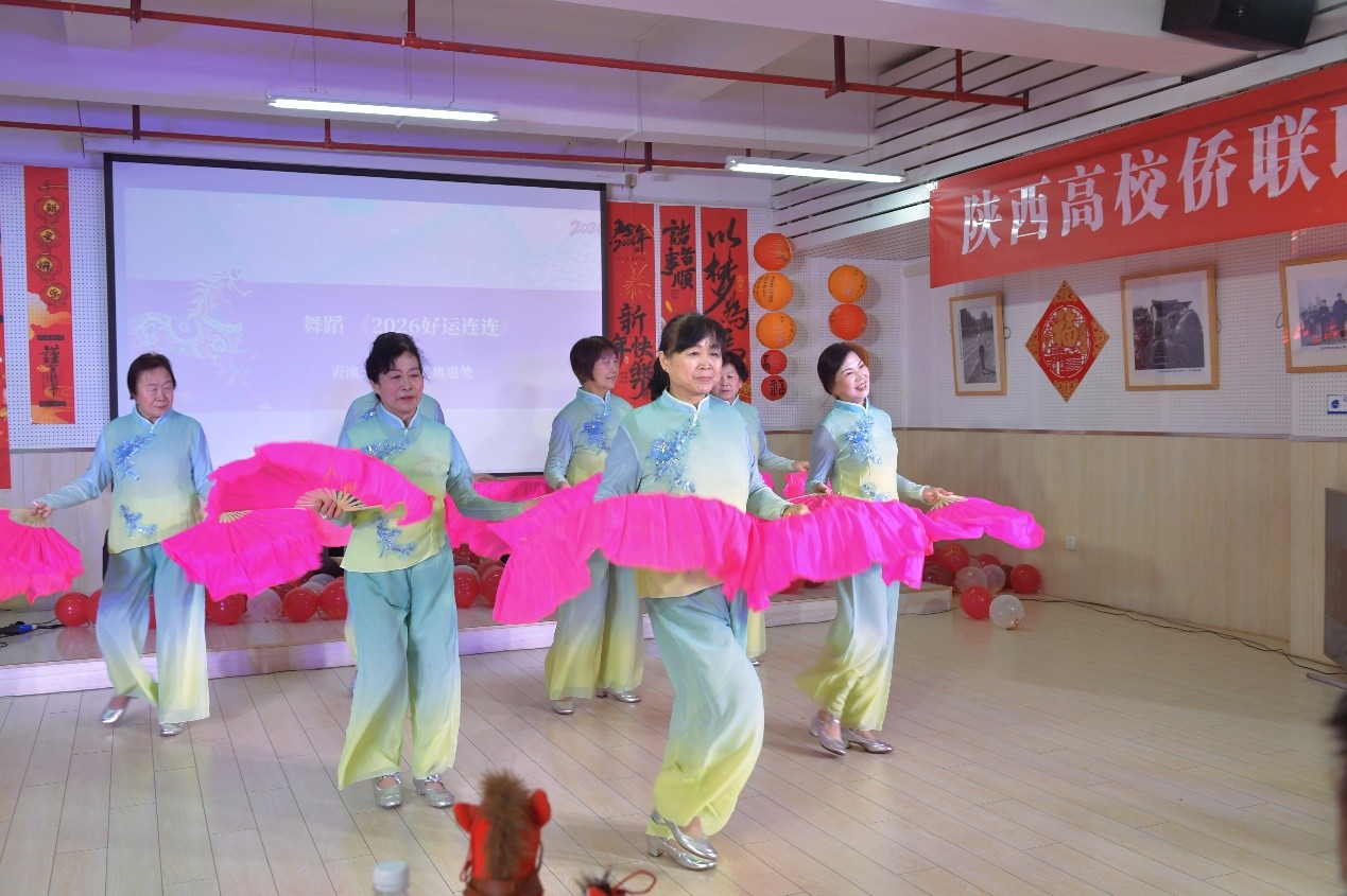 新春联谊会在西安交大健身舞蹈队的开场舞《2026好运连连》中正式拉开帷幕。老同志们手拿扇子,以欢快的节奏和灵动的舞姿传递新春祝福,瞬间点燃现场气氛。