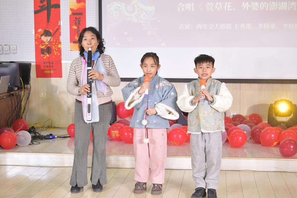 西安交大幼儿园的退休教师王秀莲、交大附小的姐弟俩李梓童、李梓珩共同带来合唱《萱草花、外婆的澎湖湾》,稚嫩的童声与温润的琴声相映成趣,两代人的歌声交织出温情暖流,诠释西迁精神的传承。