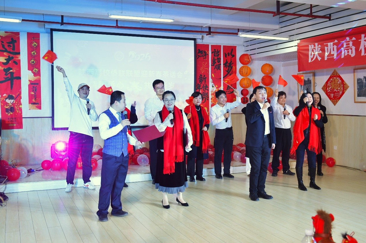 西安交大侨联、西电侨联、理工大侨联、建大侨联、西外侨联等联盟成员单位代表共同带来歌曲《我和我的祖国》,全场人员一同跟唱,歌声嘹亮、情感真挚,将整场联谊会的气氛推向高潮,也凝聚起联盟侨界同胞同心向国、携手奋进、共赴新程的磅礴力量。