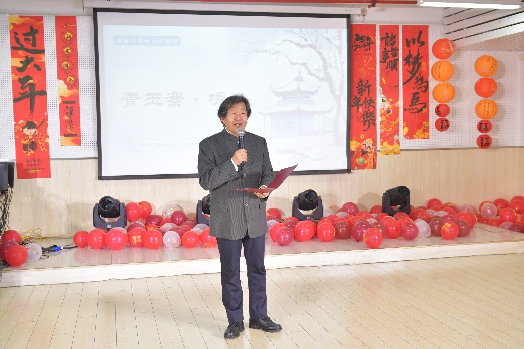 西安外国语大学高建斌老师填词一首,倾情演绎诗朗诵《青玉案·咏冬》,抑扬顿挫的语调勾勒出冬日的静谧与生机,传递出对新春的期盼与美好祝愿,送给那些为国家富强、民族复兴、甘于寂寞、孜孜以求的高校侨界学人。
