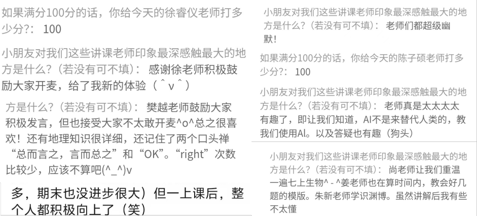 孩子们在每节课后的留言