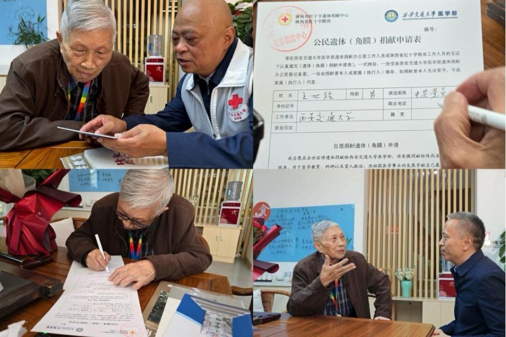 2024年10月10日,王世绍同志在生命的暮年与老伴约定,身后将遗体捐献给西安交通大学医学部,他郑重签下《公民遗体(角膜)捐献申请表》。“我们夫妻二人早已商量好,作为参与交大建设与发展的老交大人,我这一辈子都是交大给的,我要把交大给予我的传递给交大学子,等我们相继去世之后,把遗体也要捐献给我们热爱的交大,为学校的医学教育贡献自己的最后一份力量,同时也为医学事业的发展和进步贡献一份力量”。