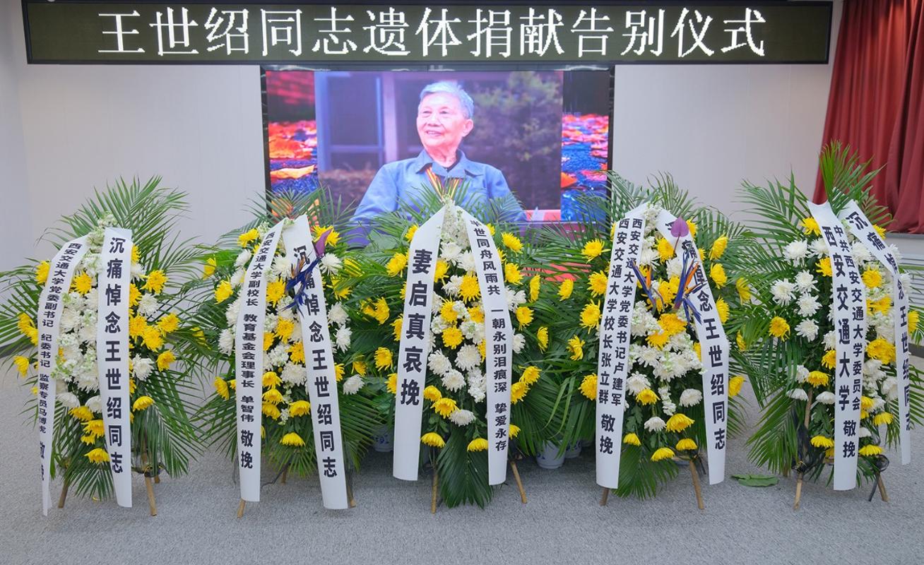 2026年2月13日,王世绍同志遗体捐献告别仪式在西安交通大学医学部举行,西安交通大学党委常委、副校长单智伟,校党委常委、宣传部部长、统战部部长成进,校党委常委、组织部部长周远,校纪委副书记申丹,医学部副主任孟晓军,学校师生代表、社会各界人士怀着无比沉痛的心情,送别这位德高望重、大爱无疆的西迁前辈。