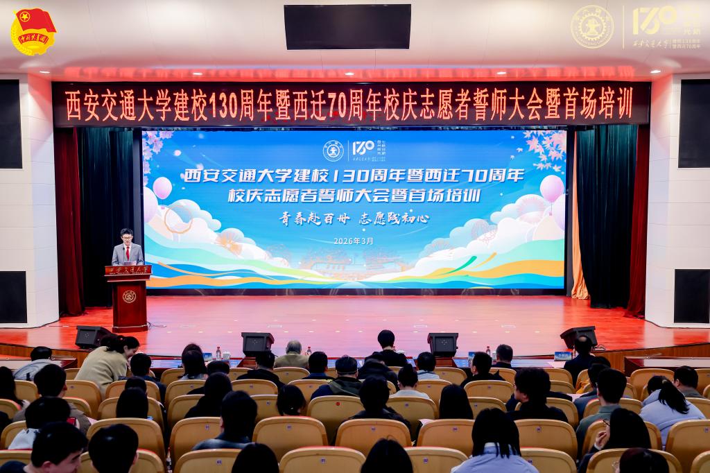 百卅辉光映初心,七秩西迁薪火传。3月4日,在第63个学雷锋纪念日来临之际,西安交通大学建校130周年暨西迁70周年校庆志愿者誓师大会暨首场培训在兴庆校区举行。西迁老同志代表胡奈赛教授,校党委副书记王欢,学工部、研工部、团委、校庆专班办、档案馆、博物馆及各书院、学院(部、中心)有关负责同志出席。活动以“青春赴百卅 志愿践初心”为主题,首批校庆志愿者代表齐聚一堂,既是校庆志愿服务的集结令,更是交大学子传承西迁精神、践行志愿担当的宣言会。