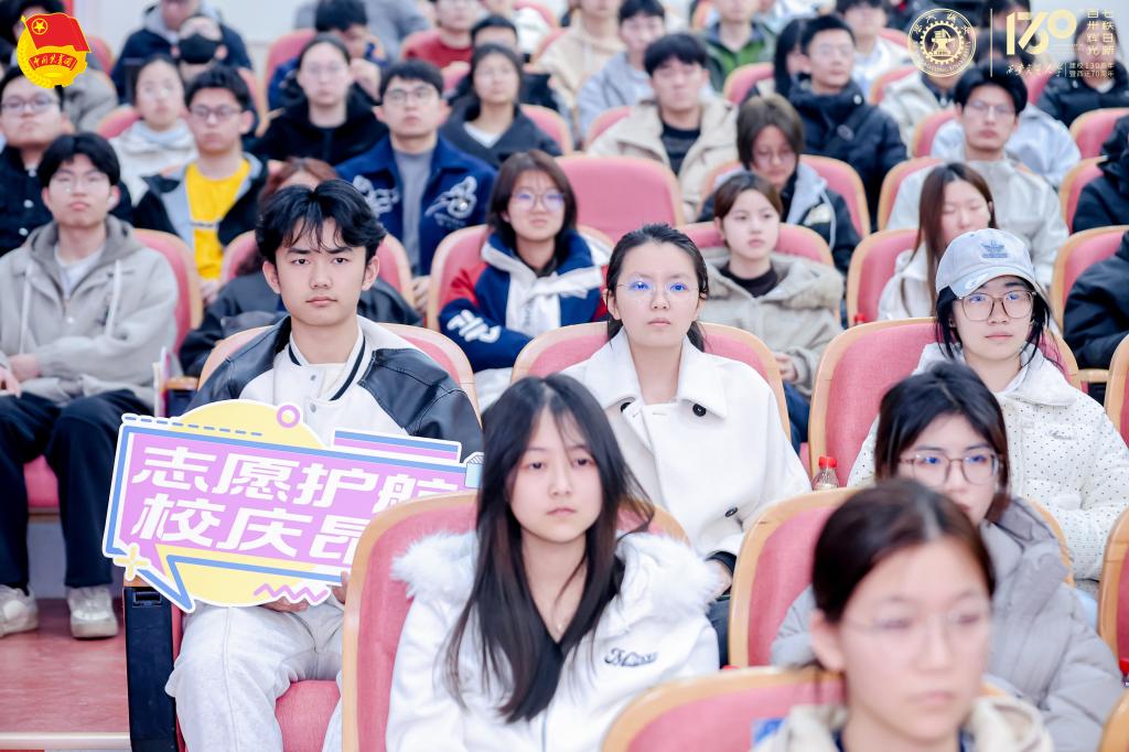 志愿者陈润尧表示:“坐在台下听西迁老教授寄语,才真正读懂‘志愿’二字的重量。以我微光,映校荣光。130,正青春,我们在路上。”志愿者李逸远谈道:“全体志愿者庄严宣誓,薪火相传,使命在肩。我们将以志愿赴百卅之约,以青春赴家国之托。”