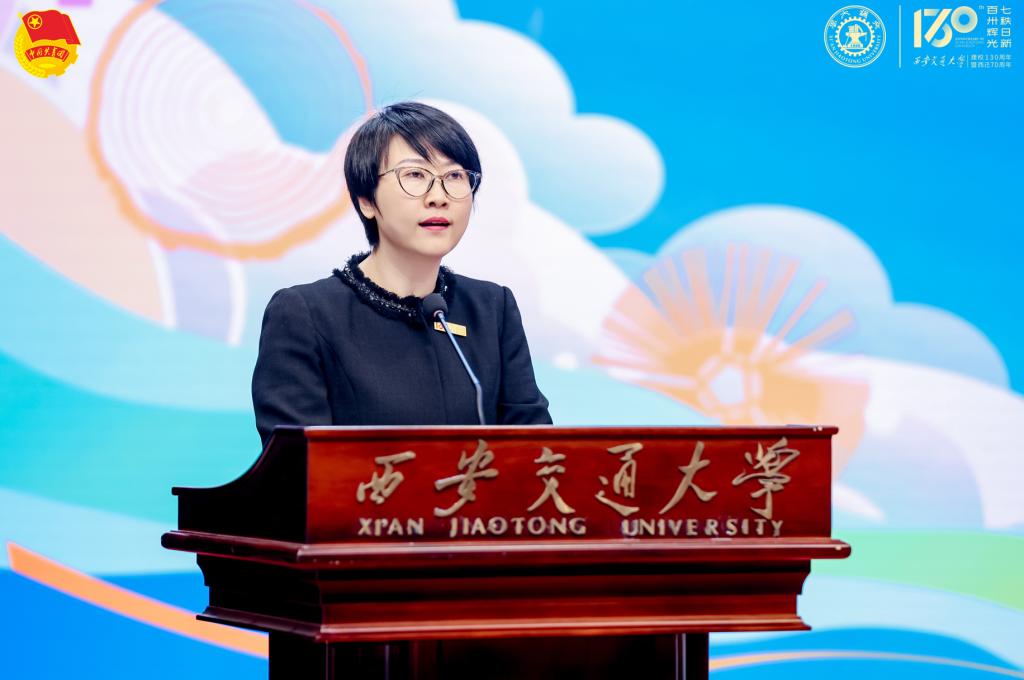 胡奈赛教授深情寄语。她亲切讲述了“130”与“70”两个数字背后深厚的爱国主义精神和交大人饮水思源的优良传统。她勉励全体学子要心存感恩、成为新时代的奋斗者,在建校130周年暨西迁70周年之际,像当年的西迁人那样继续建设学校、报效祖国。
