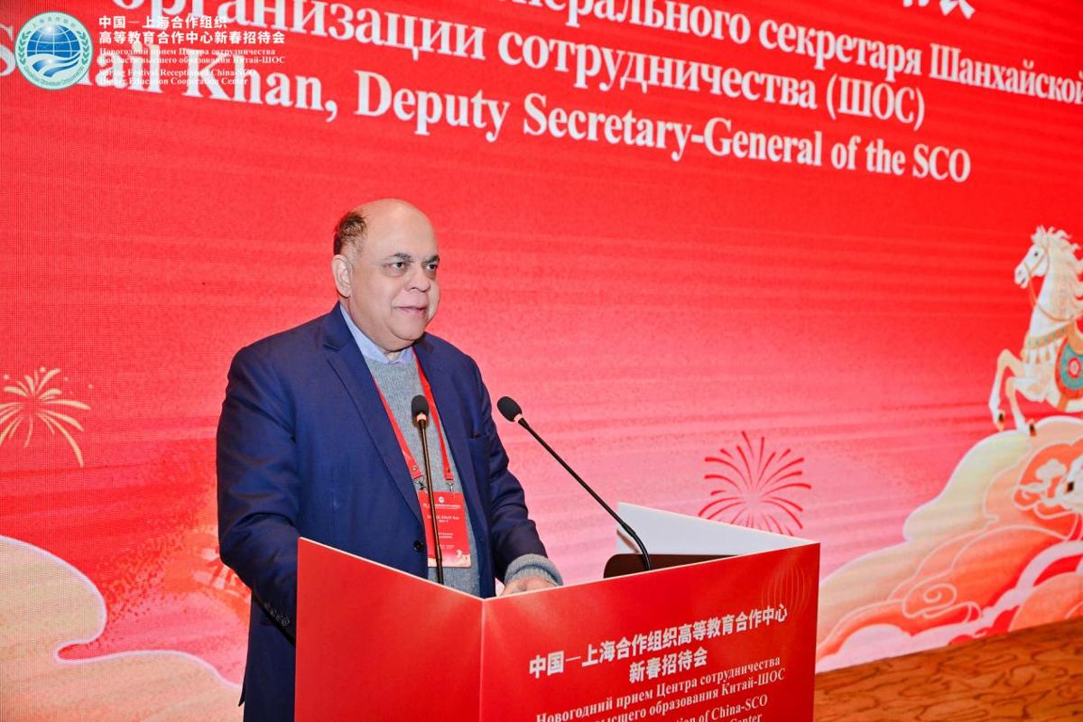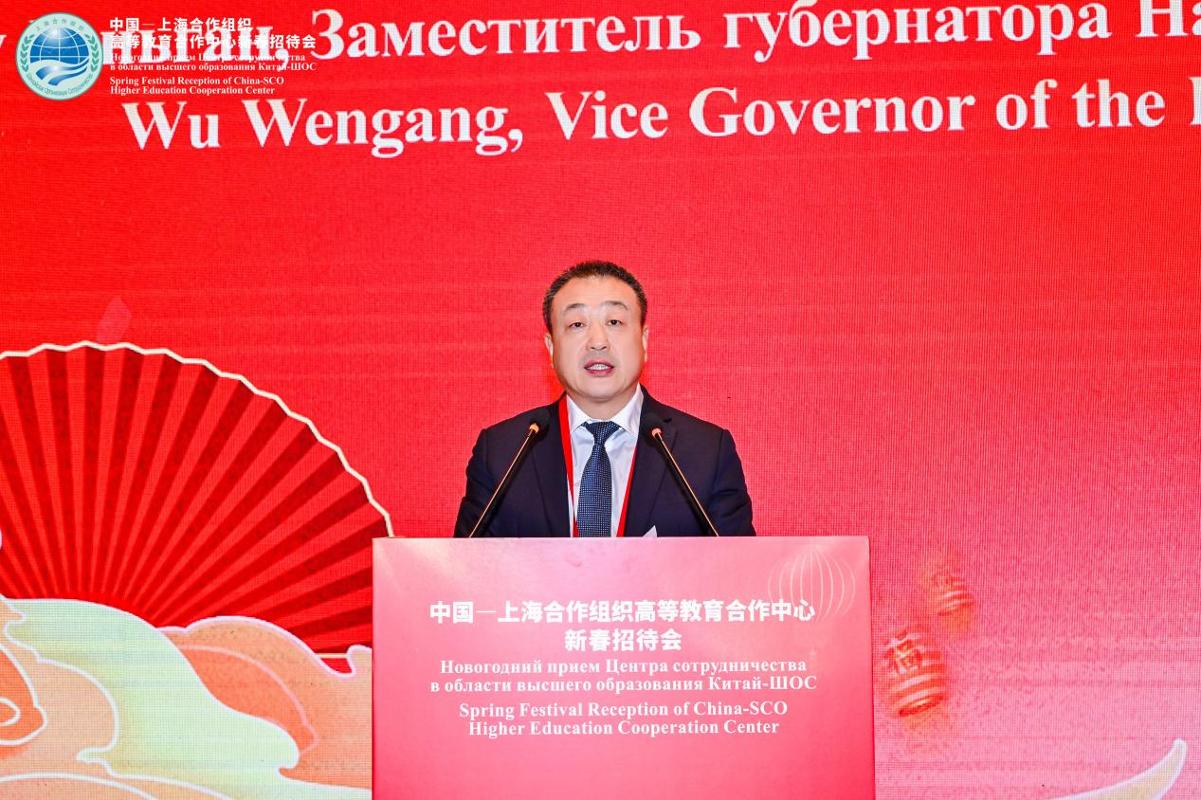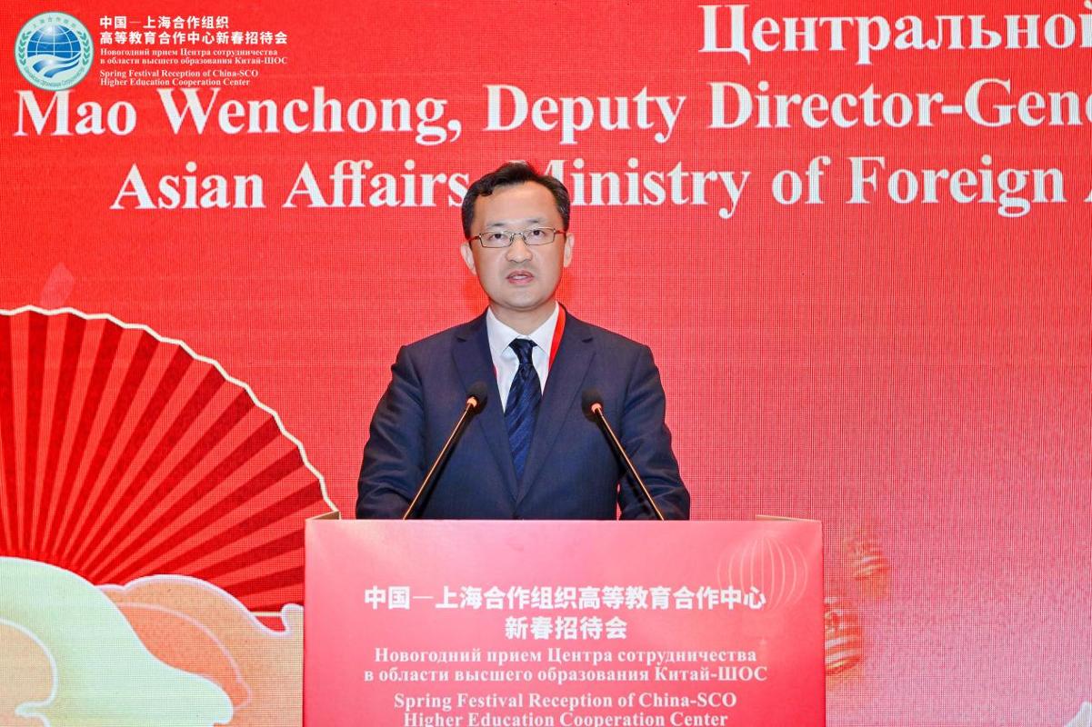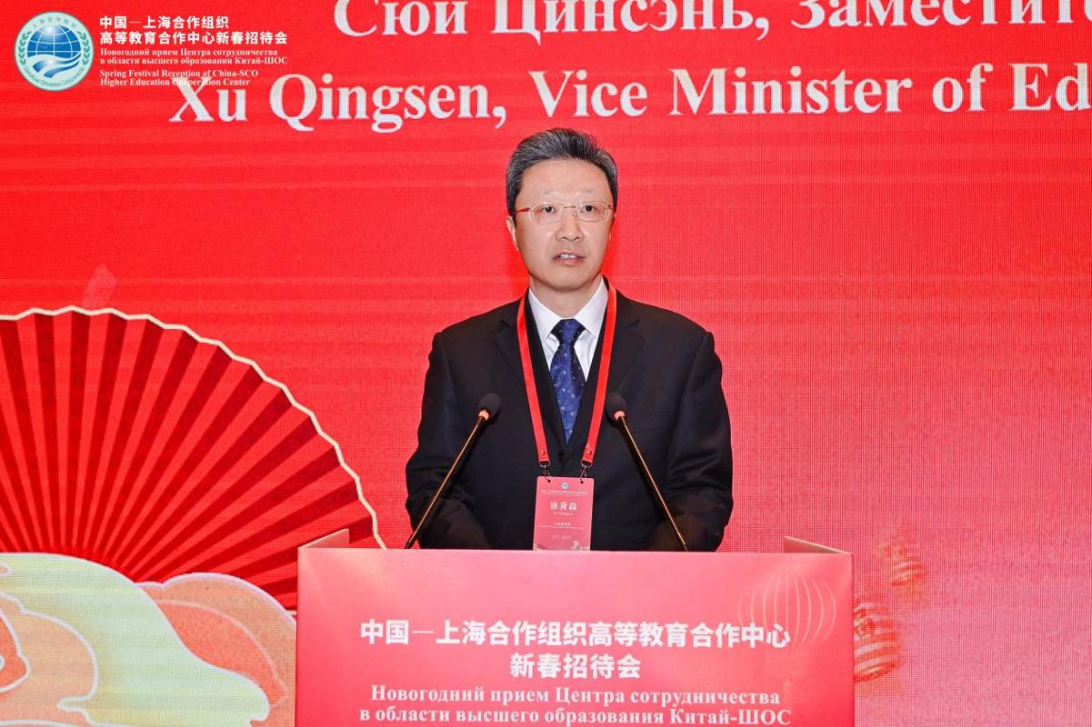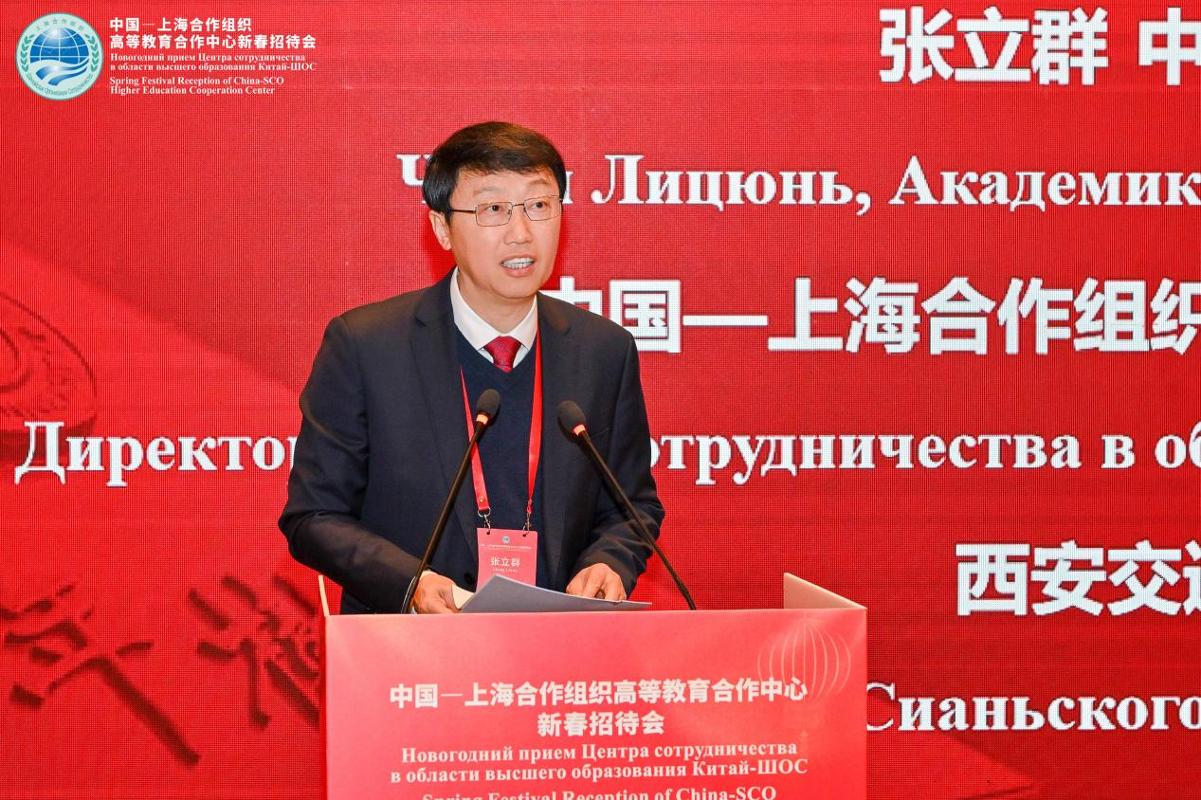 为弘扬“上海精神”,深化上海合作组织成员国间的高等教育合作交流,推动共建上合组织命运共同体。3月2日,中国—上海合作组织高等教育合作中心(以下简称“中心”)2026年新春招待会在北京举行。中国教育部副部长徐青森,上合组织副秘书长索海尔·汗,陕西省人民政府副省长武文罡,中国外交部欧亚司副司长毛文翀,中心主任、西安交通大学校长、中国工程院院士张立群,上海合作组织(以下简称“上合组织”)各成员国驻华大使馆代表,陕西省人民政府外事办公室、发改委、科技厅有关负责人和相关高校代表出席。会议由陕西省教育厅厅长王树声主持。
