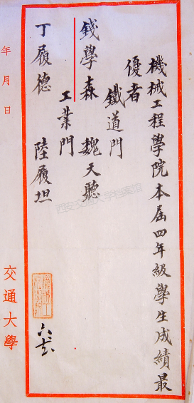 1929年,18岁的钱学森胸怀铁路救国之志,以第三名的成绩考入国立交通大学机械工程学院铁道工程门。交通大学“起点高、基础厚、要求严、重实践”的育人传统,对钱学森治学品格的塑造产生了深远影响。在这里,他深得名师教诲:“我的两位好老师陈石英教授和钟兆琳教授都一再教导我理论必须为工程实践服务”,他们“都非常重视理论根底”。1933年的一次水力学考试让钱学森铭记一生,金悫教授在批阅答卷时发现,他的卷面整洁,解题一气呵成,6道题全部解答正确,只是最后一题公式推导中“Ns”漏写了一个“s”,便被直接扣去4分,最终得96分。在校期间,钱学森的各学年总平均成绩高达89.10分,位居机械工程学院第一。