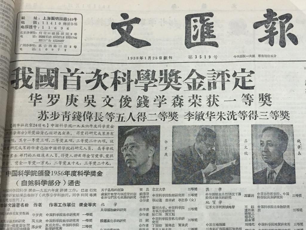 吴文俊关于“示性类及示嵌类的研究”获1956年度中国科学院科学奖金一等奖