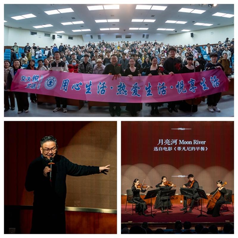 3月7日下午,XSO西安交响乐团第六次携经典音乐走进交大,带来弦乐四重奏专场演出,以音符编织节日的问候与祝福。乐团策划人曹继文老师现场开展音乐科普,艺术家们倾情演绎《Liber Tango》《Tango Jalousie》《Moon River》等经典曲目,弓弦交错间,艺术之美悄然流淌,师生们在旋律中徜徉,身心得以舒展。
