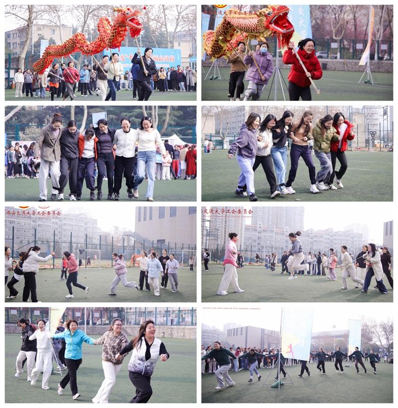 舞龙跑、跳大绳、贪吃蛇、六人七足四个项目轮番上阵,来自29个分会的34支队伍、超1200人次女教职工踊跃参与。场上欢声笑语不断,加油声此起彼伏,处处洋溢着节日的喜悦与团结的力量。