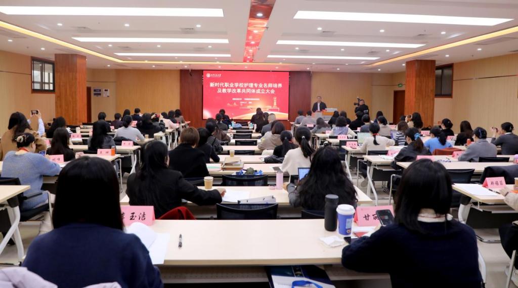 教育部新时代职业学校护理专业名师培养对象及工作室核心成员、全国56所职业院校护理专业带头人、骨干教师,以及15家医疗机构和企业的校院合作项目负责人齐聚一堂,共商护理专业人才培养大计,共话职业教育协同发展未来。