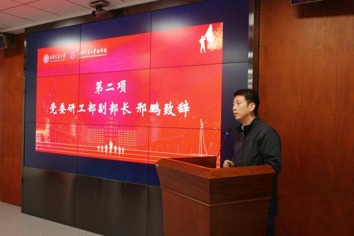 为深入贯彻落实“法援志愿行”活动要求,弘扬雷锋精神、践行志愿服务理念,充分发挥法学院专业优势服务社会,引导青年学子在实践中锤炼专业本领、厚植为民情怀,3月13日上午,法学院举行法律援助志愿服务队启动仪式。西安交通大学法学院党委书记王保民、党委研工部副部长邢鹏,陕西西咸新区人民法院专职审委会委员张宁、刑庭副庭长王于凯,法学院志愿者服务队指导教师王新雷,校团委科创部部长强伟,法学院研究生辅导员任倩文以及兄弟学院学生代表和法律援助志愿服务队的全体成员参加会议。会议由法学院党委学生工作专职委员、纪委委员张乃钟主持。