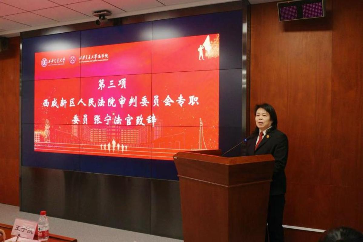 陕西西咸新区人民法院专职审委会委员张宁结合自身求学和从业经历,为同学们上了一堂生动而深刻的实践课。她回忆了自己的求学时光,并在与同学们交流后,对法学院研究生同学扎实的专业素养和良好的精神风貌给予肯定。谈及职业经历时,她介绍,自己大学毕业后进入法院工作,先后在民事、刑事以及执行等多个岗位历练,丰富的一线审判实践,使她对法律职业有了更深刻的体会。她寄语同学们:一要做有温度的法律人,在面对群众法律咨询和实际诉求时,既要坚持法理,也要传递温情;二要进一步巩固专业知识,在学思践悟中不断提高运用法律解决实际问题的能力;三要勇于担当,在服务群众、奉献社会中彰显青年法律人的责任与价值。