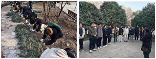 文治书院学生在物业服务中心老师指导下种植麦冬