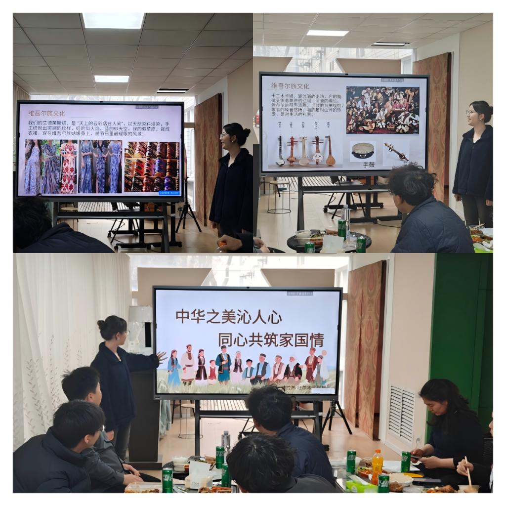 师生共进午餐,氛围轻松融洽。各民族学子齐聚星空间,一边共享美味午餐,一边相互交谈。作为学校统战部宣讲团成员,预科2502班的迪拉热·吐尔地买买提同学为同学们带来题为《中华之美沁人心·同心共筑家国情》的主题宣讲。她从民族饮食、服饰、文化、情感等方面向大家介绍了维吾尔族的风俗文化,让大家通过各式各样的乐器、各种颜色的衣服、真情实感的故事感受到了各民族血脉相融、荣辱与共的情感链接。