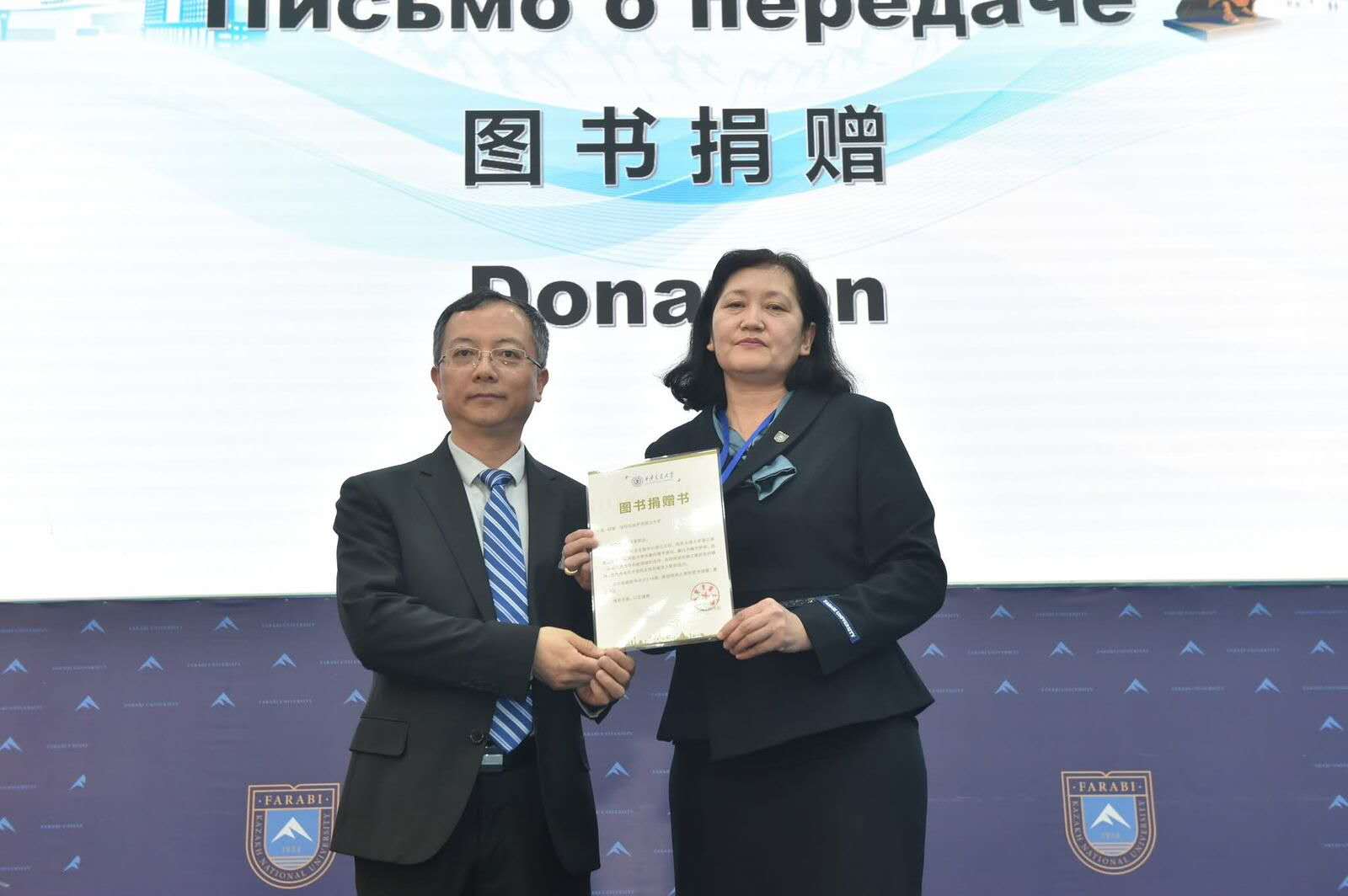 签约环节,双方签署多部重点出版项目协议,包括《托卡耶夫和他的中国情缘》《阿里·法拉比全集》《从客居到归心——跨越二十年的中国回响》,为后续深度合作奠定坚实基础。韩永君代表西安交通大学向哈萨克斯坦国立大学赠送人工智能、机器人、新能源等方向的中文图书,为中亚师生了解中国搭建便捷窗口。