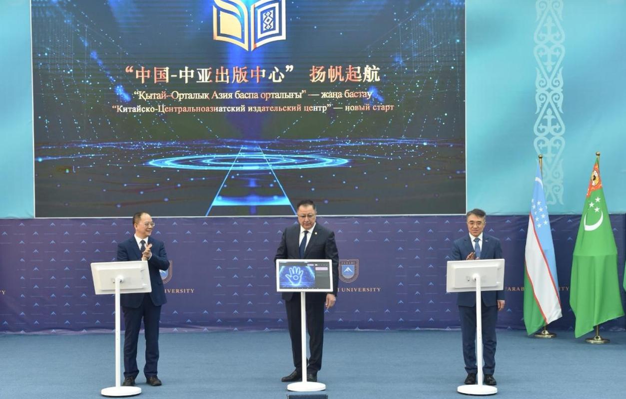詹谢伊特·坎谢伊特乌勒、苏方遒、柴渭共同为中国-中亚出版中心揭牌。
