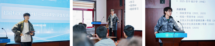 3月18日,数学与统计学院在兴庆校区数学楼2-1会议室举办“智能科学强基计划——启智讲堂”学生专场活动。活动邀请三位优秀学生代表就学业规划与科研经验进行分享,2025级智能科学强基计划全体学生参会,活动由班主任古祥老师主持。