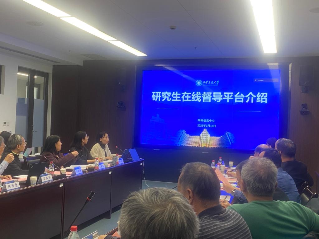 会上,研究生院培养办主任罗婧汇报了2025年研究生院在学科交叉培养、精品课程与精品教材“双百计划”、AI赋能研究生成长和教育全过程、研究生创新实践系列大赛等方面所取得的成效,介绍了2026年研究生院在学科交叉中心内涵建设、思政课程教材一体化、国家级教学成果培育、AI赋能培养体系深化等方面部署的七大重点工作,回应了针对督导问题台账的整改落实情况,从“工程伦理”集体备课长效机制,到“中国马克思主义与当代”授课团队有效衔接,从教学事故依规认定处理,到校院两级督导队伍协同建设,进一步夯实“发现问题—建立台账—落实整改—闭环管理”督导工作机制,提升研究生教学质量。