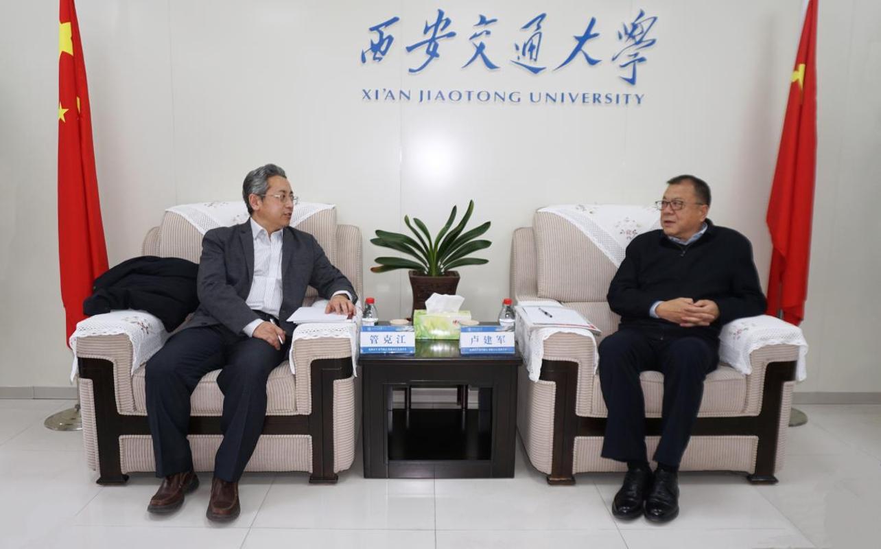 卢建军对管克江一行表示欢迎,对环球时报社长期以来的支持表示感谢,并介绍了学校依托创新港实施“产教融合、协同育人”创新工程,推动产教融合走向“一带一路”的实践探索。他表示,习近平总书记围绕发展新质生产力提出了“四个新”的要求,点明要“实现新突破”“探索新途径”“开创新局面”“取得新成果”。高水平研究型大学作为科技第一生产力、人才第一资源、创新第一动力的重要结合点,要深刻把握在服务现代化产业体系建设中所肩负的使命,使更多科技成果从“书架”走向“货架”,转化为现实生产力。西安交大坚持国家战略看交大、国际视野看交大、跳出交大看交大,坚持融入国家战略、融入地方发展、融入产业创新。当前,学校正围绕“十五五”时期教育科技人才一体发展、高等教育高水平开放合作的战略部署,加快建设中国特色、世界一流大学。环球时报社作为具有全球影响力的主流媒体,在国际传播、智库资源等方面优势显著。希望双方以此次交流为起点,在既有坚实合作基础上,推动在国际传播能力建设、区域国别研究协同创新、智库共建与人才培养、服务“一带一路”倡议等方面开拓新领域、打造新标杆,实现校媒互利共赢,共同服务国家高水平对外开放和区域经济社会高质量发展。
