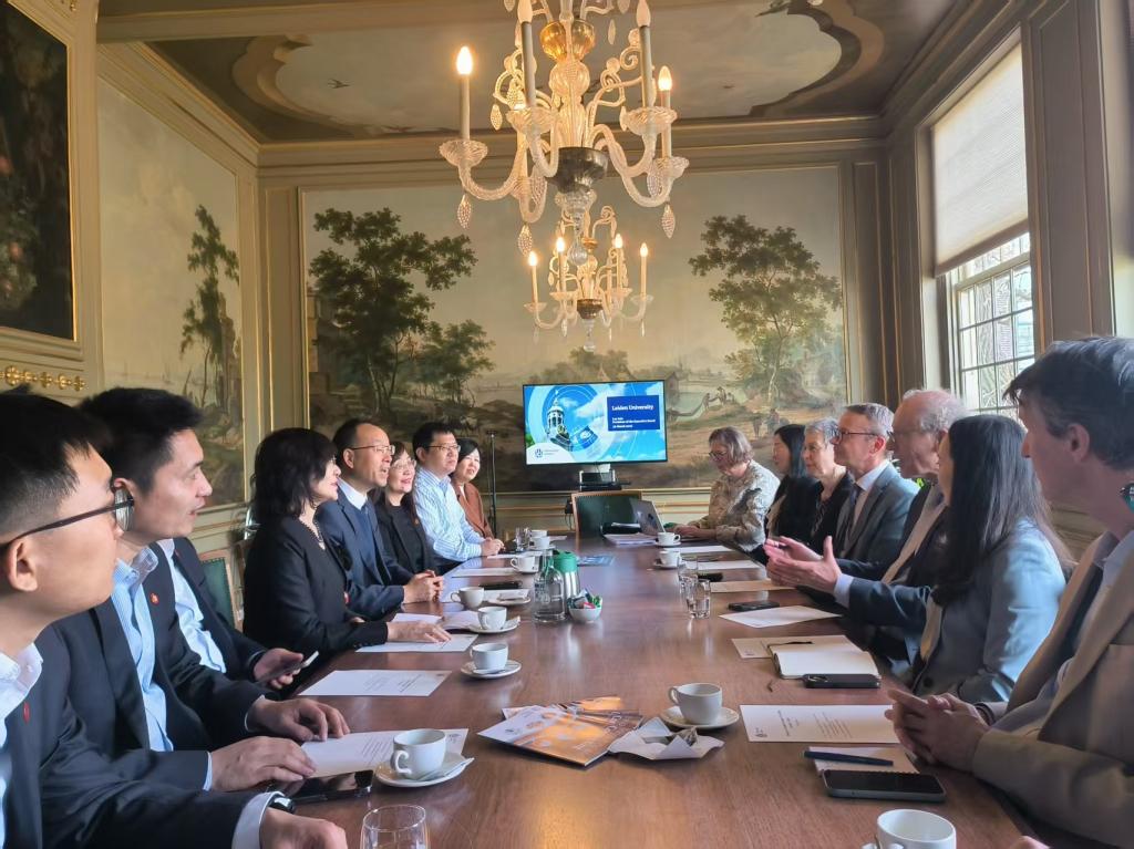 3月26日,莱顿大学执行董事会主席、校长卢克・塞尔斯会见代表团一行,莱顿大学副校长贾斯珀・克诺斯特及计算机、数学、化学等学科与国际事务部门负责人参加座谈。