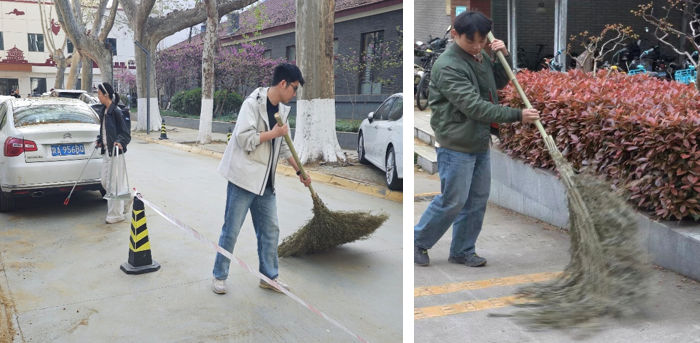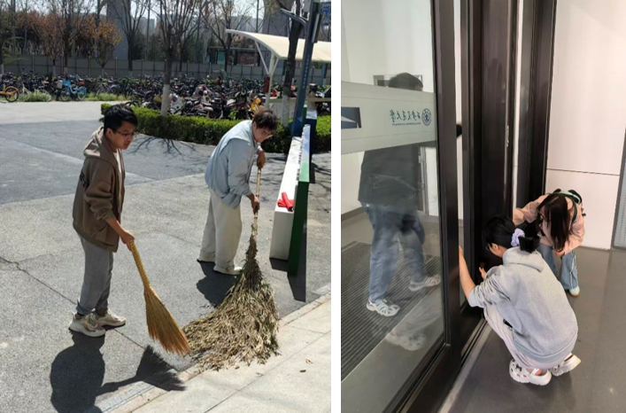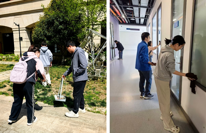 兴庆校区聚焦东三楼及周边楼宇、实验室外围区域,分组清理卫生死角、规整杂物堆放、擦拭楼宇门窗,不留盲区、不漏死角,全力打造整洁有序的学习科研环境。后勤保障部统一配发扫帚、垃圾夹等劳动工具,安排专人现场指导,为活动安全、高效、有序开展提供坚实保障。