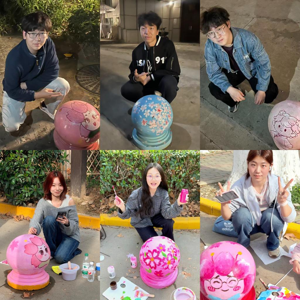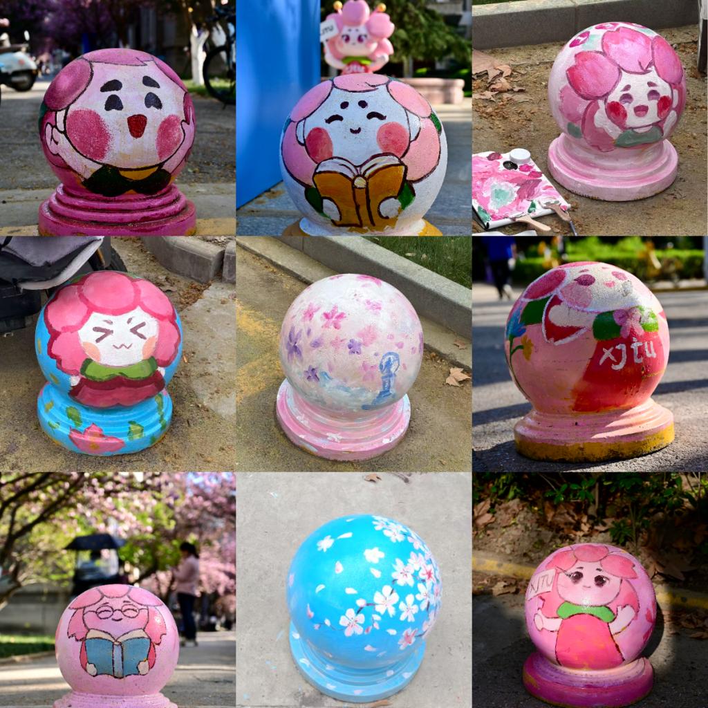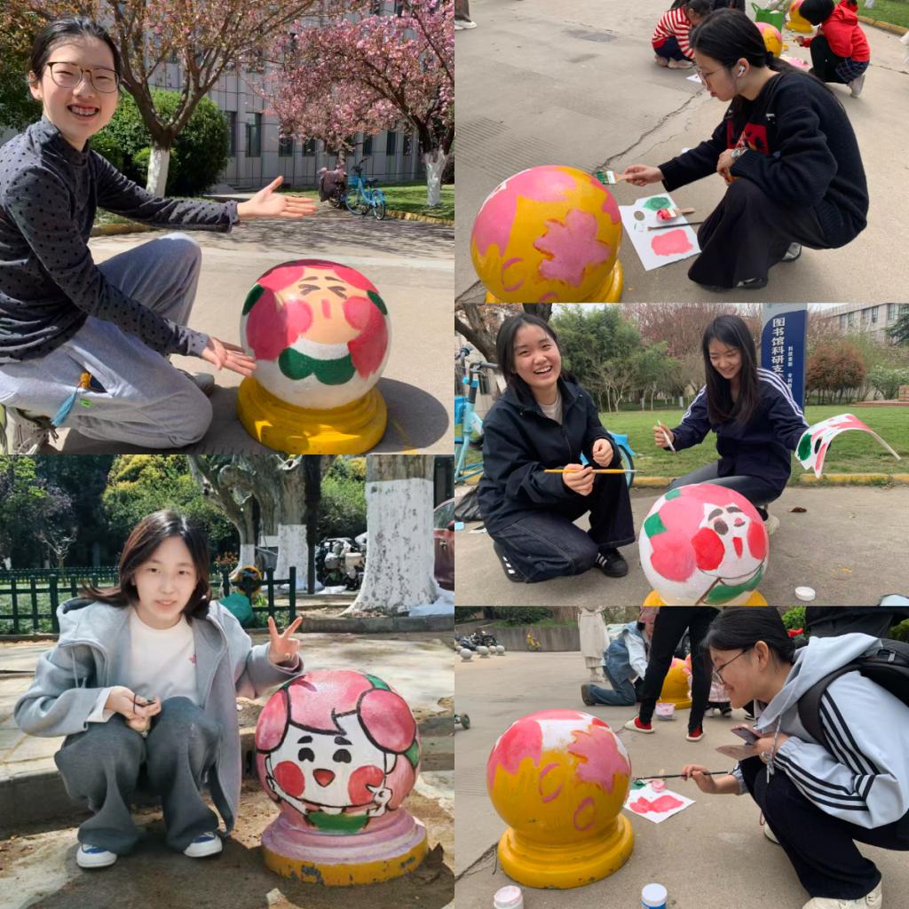 经过同心协力的精心创作,25个焕然一新的石墩已经错落分布在校园的主要道路旁,成为师生驻足欣赏的微景观,也成为迎接校庆的独特献礼。此次石墩美化活动,既是人文学子将专业知识转化为实践行动的生动体现,也是书院、学院协同学校职能部门深化美育与劳育实践、推进校园文化建设的具体举措。参与同学纷纷表示,此次活动既装点了校园,也深化了个人对学校的热爱与认同,“这次参与,让我真切感受到了校园文化的温度,也为樱花节和学校一百三十周年校庆贡献了一份力量。”环设2501刘舒元表示。